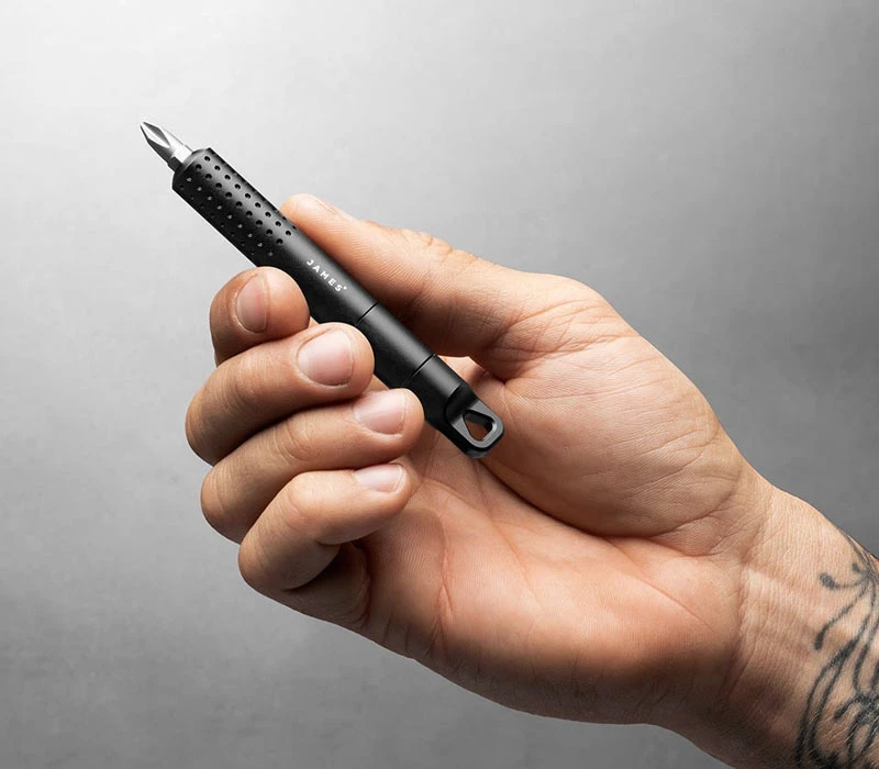 So einen Schraubendreher kann man gerade als Messerfreund immer mal gebrauchen. Wer jedoch nicht immer riesige Zangen-Tools oder einzelne Schraubenzieher mitnehmen möchte, sollte sich einmal das The Cache River Tool von The James Brand ansehen. In diesem stilvollen EDC Tool verstecken sich gleich 3 Bits: Kreuzschlitz, Schlitz und Torx. Diese können im 6061 Aluminium-Gehäuse ganz bequem verstaut werden. Die Bits werden praktischerweise magnetisch gehalten. In schickem und unauffälligem Schwarz ist das Cache River die optimale Wahl für jeden Gentleman da draussen!