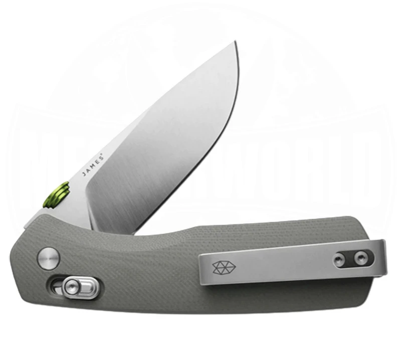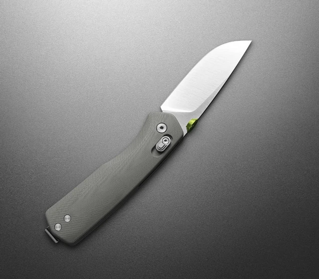Der graue G10 Griff ist sehr robust und liegt hervorragend in der Hand. Mit seiner 7 cm langen Drop Point Klinge aus VG-10 Stahl lassen sich alle anfallenden Aufgaben im Alltag ohne Probleme bewältigen. Um die schöne Klinge in Position zu bringen, wurde ein Daumenlifter in Giftgrün am Klingenrücken angebracht, welcher dank der Farbe ein richtiger Hingucker ist. Die Klinge verriegelt sicher über einen beidseitigen Side Lock.