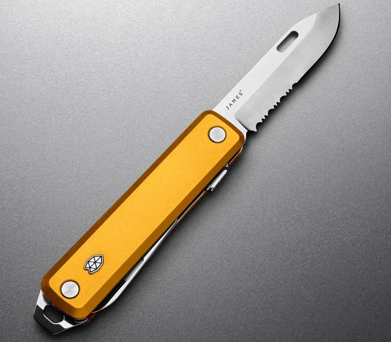 Das The James Brand – The Ellis Canary Serrated ist nicht nur praktisch, sondern auch ein echter Hingucker. Mit seinem auffällig farbenfrohen Griff in Gelb-Orange und dem stilvollen Design zieht es garantiert die Blicke auf sich. Es ist ein Multitool, das durch seine Funktionalität und Ästhetik gleichermaßen überzeugt und ein Must-Have für alle, die Wert auf Qualität und Design legen. Ob beim Camping, Wandern oder im Alltag – dieses Taschenmesser wird Sie nicht enttäuschen.