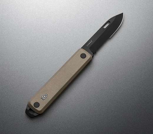 Eine nützliche 6,6 cm lange Drop Point Klinge, die mit einer schwarzen PVD Beschichtung und einem Teilwellenschliff versehen wurde, um alle im Alltag anfallenden Aufgaben im Alltag zu bewältigen. Die Klinge besteht aus 12C27 Sandvik Stahl und für den Griff wurde robustes G10 verwendet, welcher gut in der Hand liegt und das Arbeiten damit enorm angenehm gestaltet. An dem Messer befindet sich noch eine Pry Bar und ein Schlitzschraubendreher sowie ein Deep Carry Drahtclip in der Tip Up Position. Und das alles bei einer Gesamtlänge von 16,5 cm und einem Gewicht von gerade Mal 50 g. Ach ja, zum öffnen der Klinge hat der Hersteller The James Brand einen Nagelhau bei diesem schicken Slipjoint Messer verbaut.