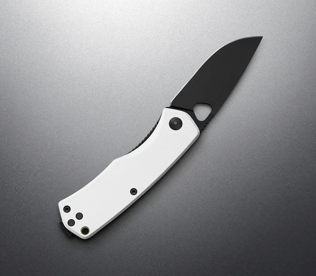 Die 7 cm lange Drop Point Klinge aus VG10 Stahl wurde mit einer schwarzen PVD Beschichtung versehen, die in Kombination mit den weißen Griffschalen aus G10 ein richtiger Hingucker ist. Auf dem Klingenrücken finden wir ein gut durchdachtes Jimping, das zusammen mit den Griffschalen für eine gute Handlage beim Schneiden sorgt. Zum Öffnen der Klinge wurde ein Daumenloch integriert und zum sicheren Verriegeln setzt The James Brand auf einen robusten Liner Lock. Aber auf Farbe wollte man auch bei diesem Messer nicht verzichten und hat die Fangriemenöse mit einem knalligen Grün versetzt. Ein richtig kleiner Eyecatcher, der zusammen mit einem passenden Lanyard ausgestattet werden kann.