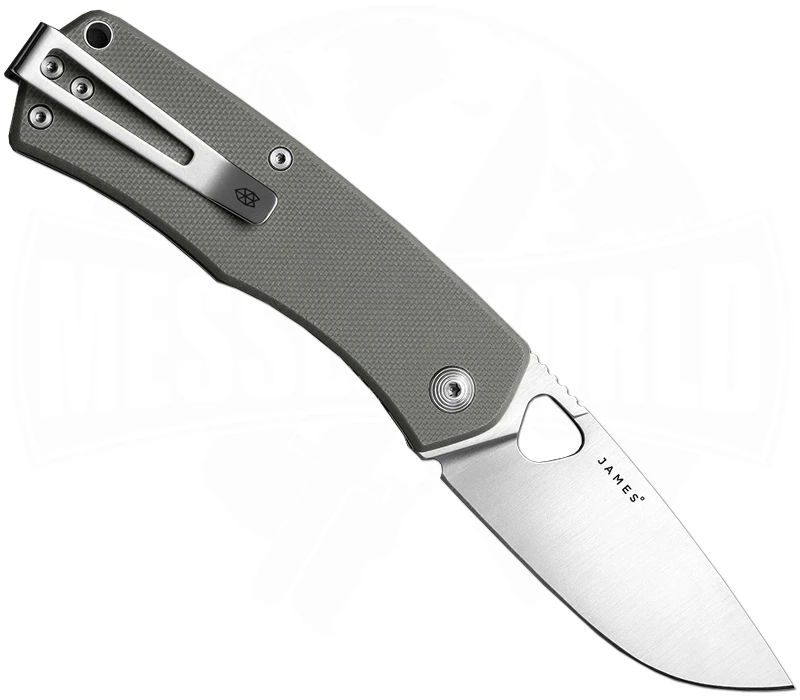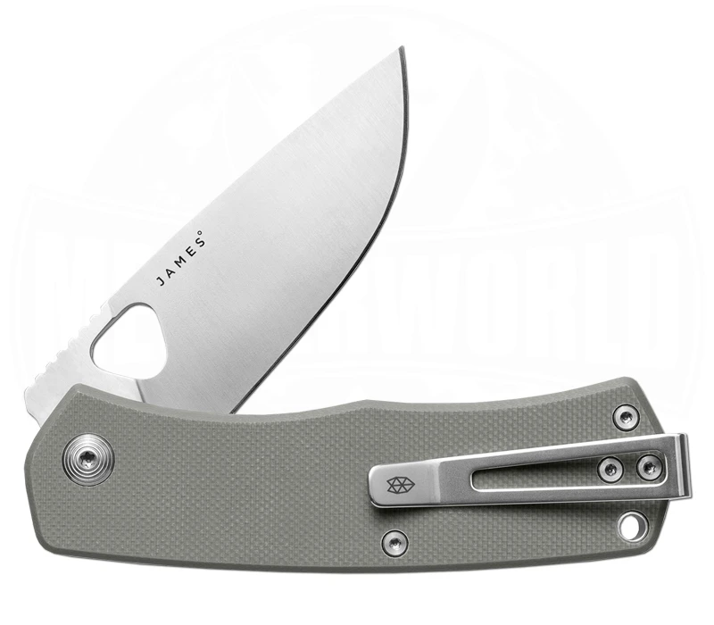Die G10-Griffschalen bieten eine hervorragende Handhabe und liegen dank der ergonomischen Formgebung des Messers perfekt in der Hand. Es ist höchst robust und widerstandsfähig gegenüber äußeren Einflüssen, so dass du dich auf das Messer verlassen kannst, auch unter schwierigen Bedingungen. In coolem Grau gehalten, fügt sich das Folsom harmonisch ins Equipment hinein. Der Liner-Lock Mechanismus hält die Klinge aufrecht in Arbeitsposition. Mit der praktischen Daumenloch-Öffnungshilfe wird das Aufklappen des Messers zum Kinderspiel. Mit dem Pocket-Clip, auf dem das James Brand Logo prangt, kannst du das Messer bequem und unauffällig in deiner Hosentasche tragen. So ist es stets griffbereit. Ob beim Camping, Wandern oder im Alltag – das Folsom ist bereit, jede Herausforderung zu meistern. Mit seiner hochwertigen Verarbeitung, praktischen Funktionalität und zeitlosem Design ist es ein absolutes Must-Have für jeden Abenteurer.