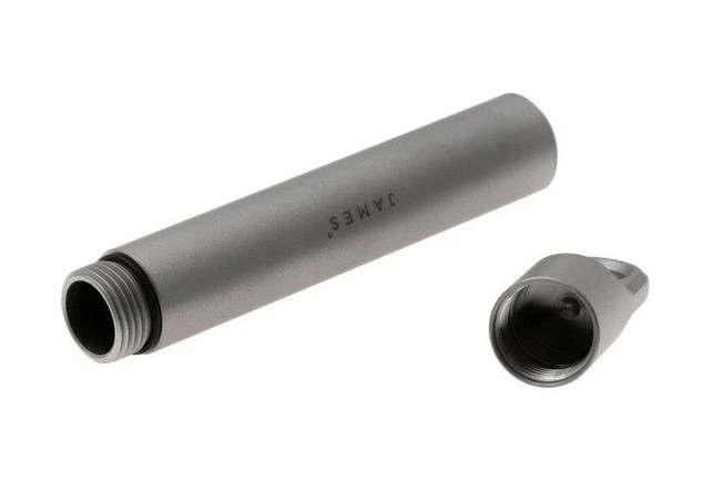 Der The James Brand Randolph ist ein kompakter und moderner Schlüsselbund-Tool mit einem schlanken Design. Praktisch für alle Arten von Kleinigkeiten, die man unterwegs braucht. Zum Beispiel Zahnstocher, Geldscheine, Medikamente und so weiter. Es ist aus leichtgewichtigem Aluminium gefertigt. Der attraktive Schraubverschluss ist wasserdicht und hat ein Loch für ein Schlüsselband. Er kann leicht an einem Schlüsselring oder einem Stück Paracord befestigt werden. Auf dem Randolph ist das Logo von The James Brand eingelasert.